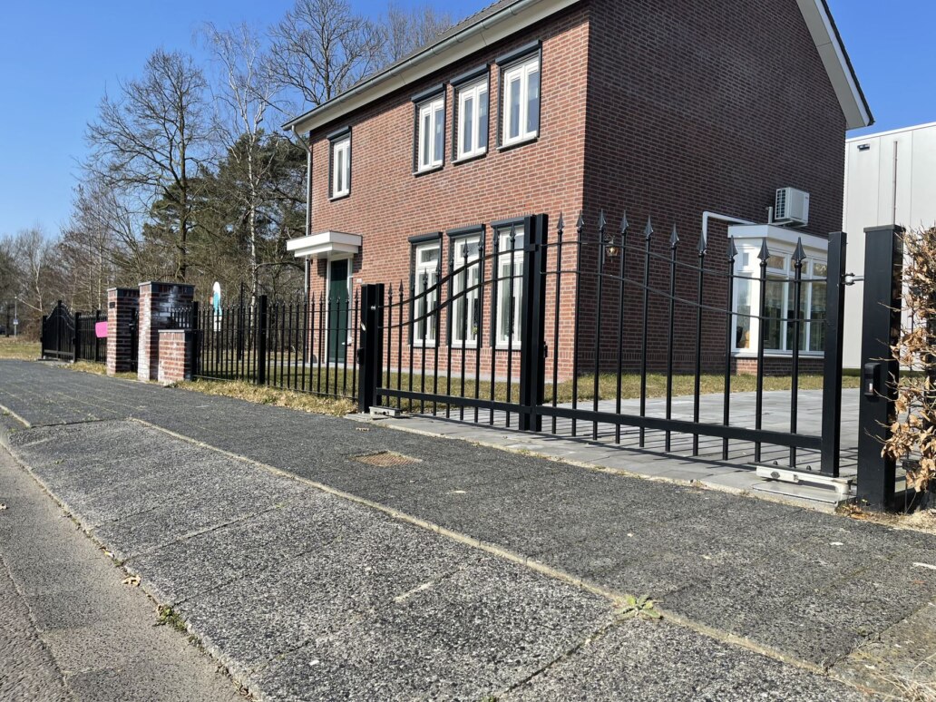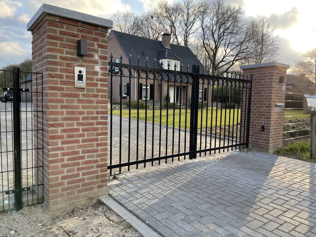 De Prince draaipoort is het topmodel uit de reeks sierpoorten van NHB Hekwerk BV. Deze poort heeft alle accessoires: